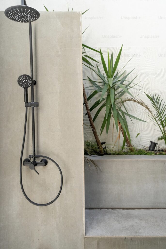 - Na terase: Pokud nemáte zahradu, můžete zahradní sprchu umístit na terasu nebo balkon, kde poslouží jako chladivý a osvěžující prvek.